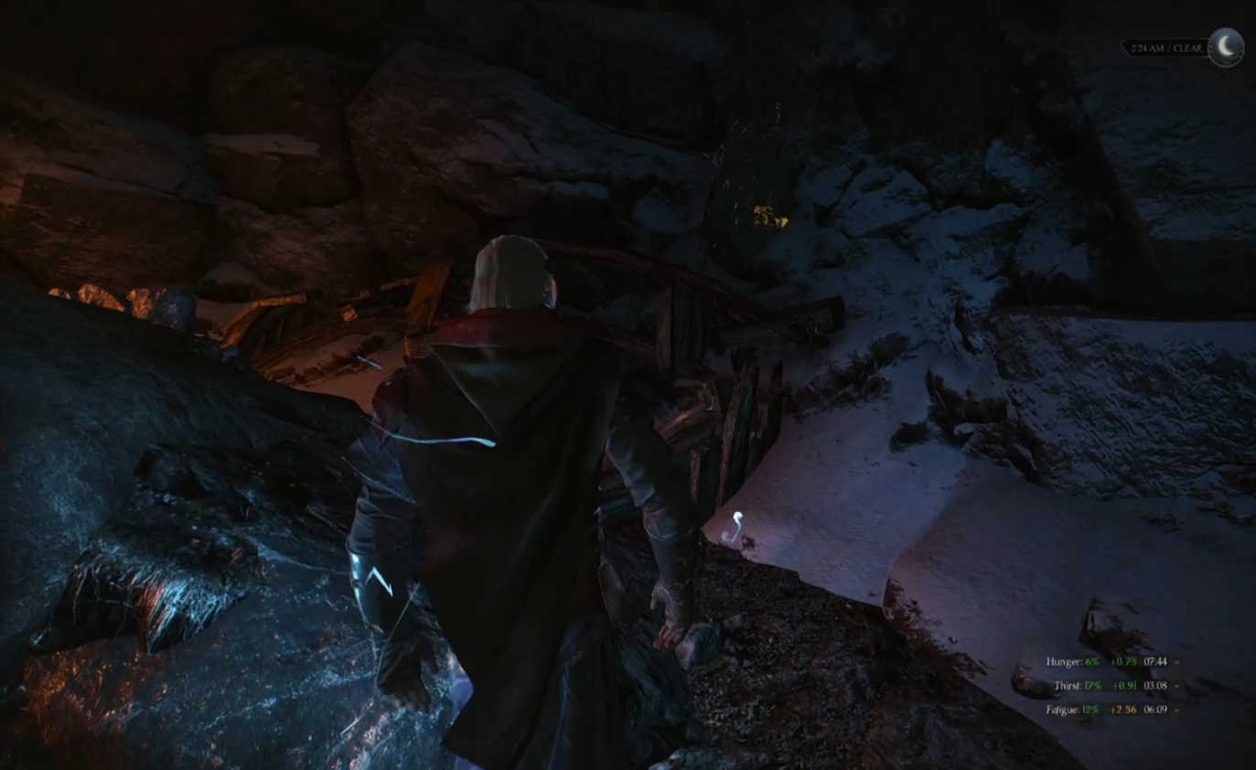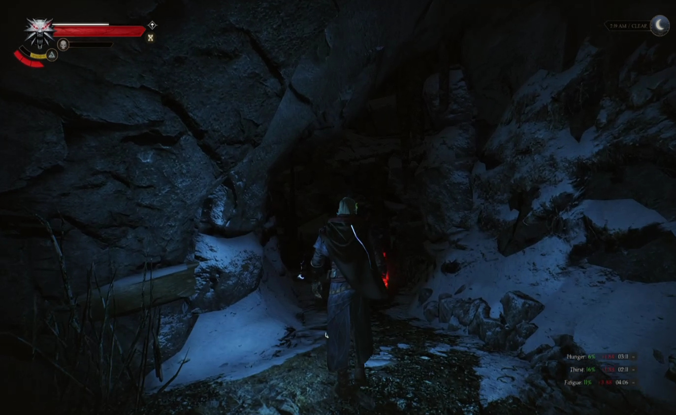 Once inside, you need to climb again... this cave has 3 levels, if you look for them... but the climb spots are NOT marked and you'll have to randomly jump at the wall edges until you suddenly grab a ledge. All 3 of them are like this. Witcher senses will not help you find them.