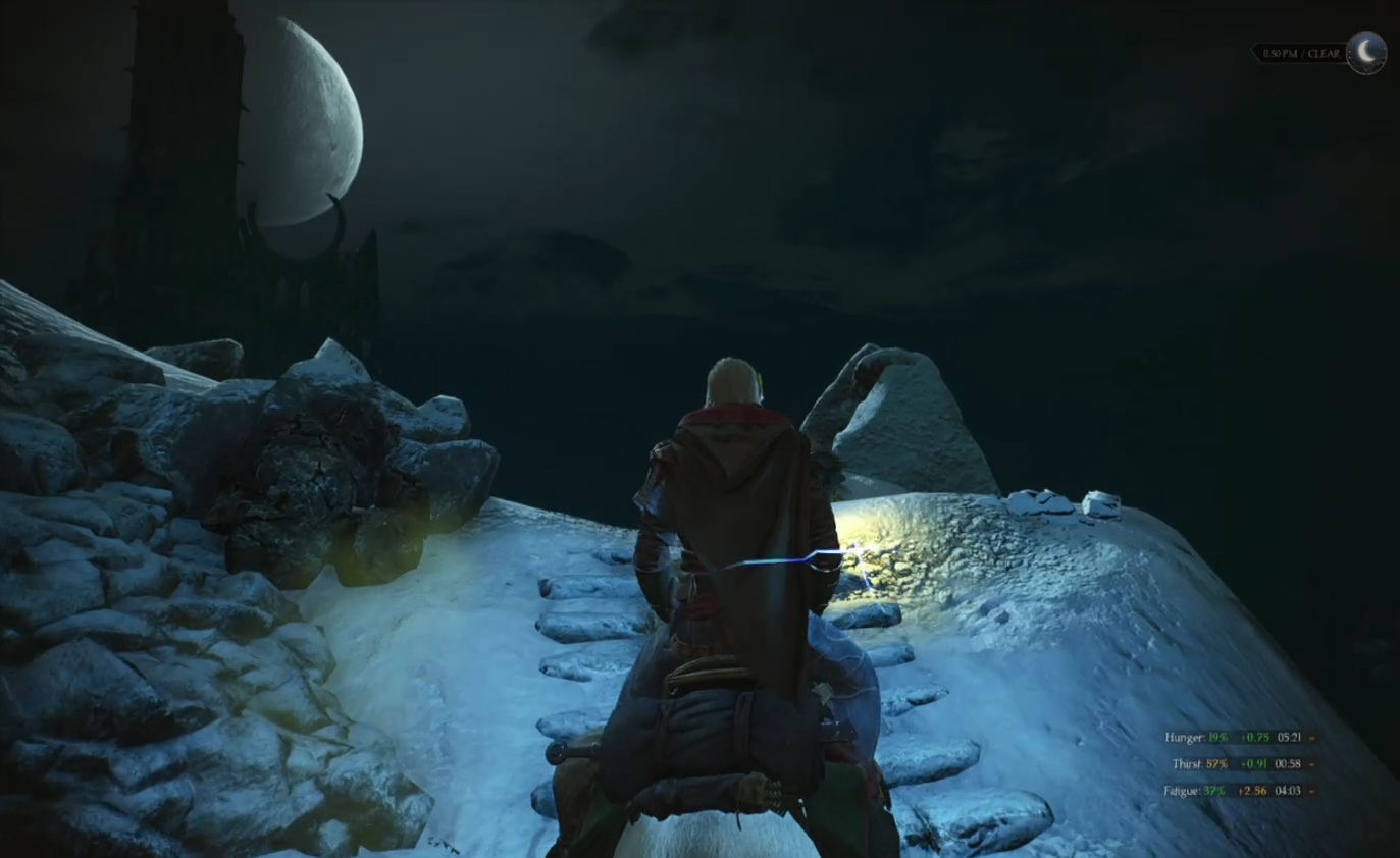 If you go on the path to the tower, look for the crevasse where is hidden a treasure chest. Yo can climb the cliff here. Do so. There is no quest that will ever tell you to do so, so you will NOT find this area of the game unless you roam and explore at random. Once on the top, look around, you will see a crashed boat on top of the cliff, buried under the snow.