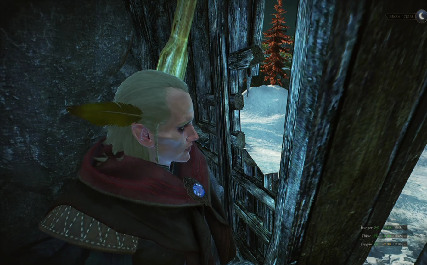 Avallac'h is now standing on the ledge with the patrolling Ice Troll, looking back down at where he (Avallac'h) just was in the previous image).