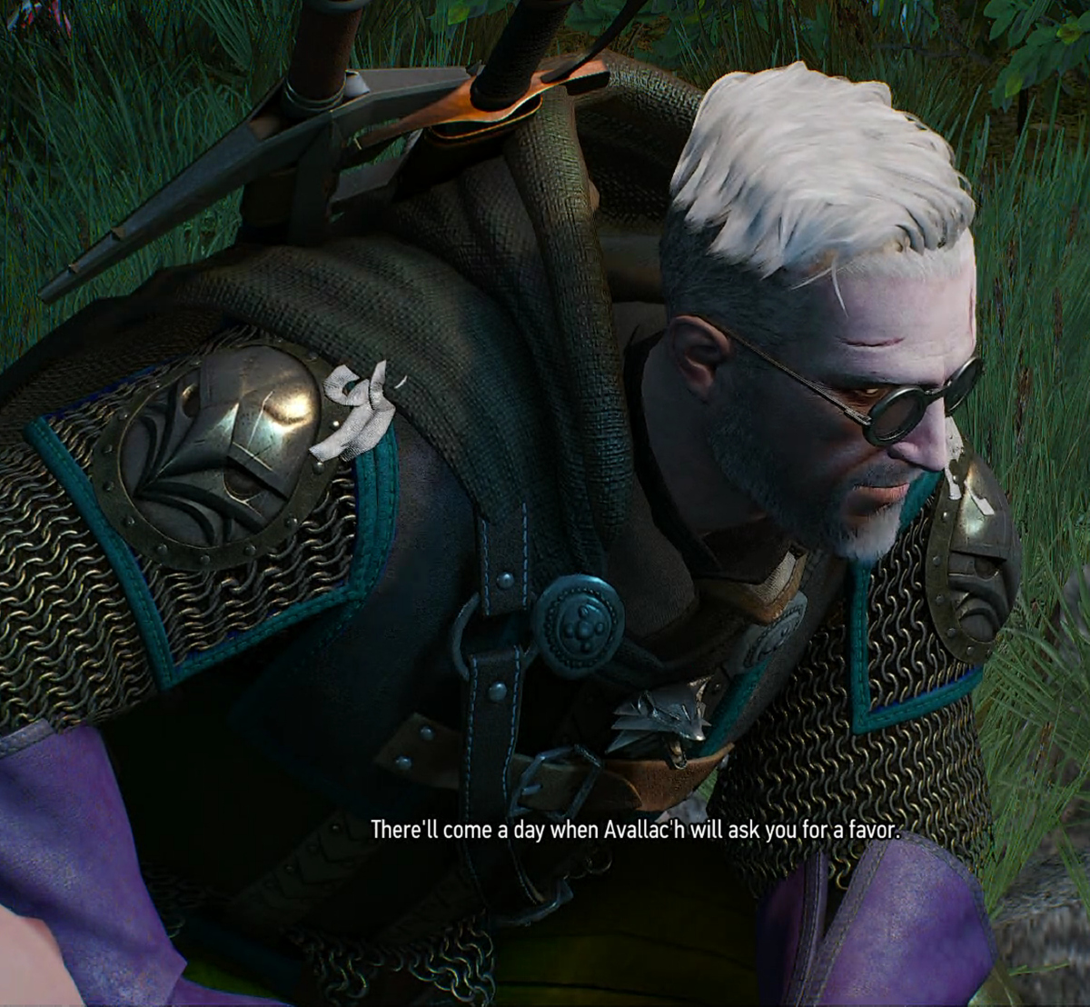 These game mechanics do however contradict the cutscenes of the game which tell us Avallac'h is physically very weak, describing him with the words: "ancient", "elderly", "crippled", "invilade", and "suffering from serious nerve damage", while also describing him as having difficulty using his hands due to "violently twitching fingers" and wearing a hood when outside because of having "pupils that do not react to light"...both his twitching fingers and dilated/frozen pupils are attributed to nerve damage caused by the toxic poisons Vesimer vivisected into Avallac'h's bloodstream while the Witchers were torturing him during The Trial of Grasses.