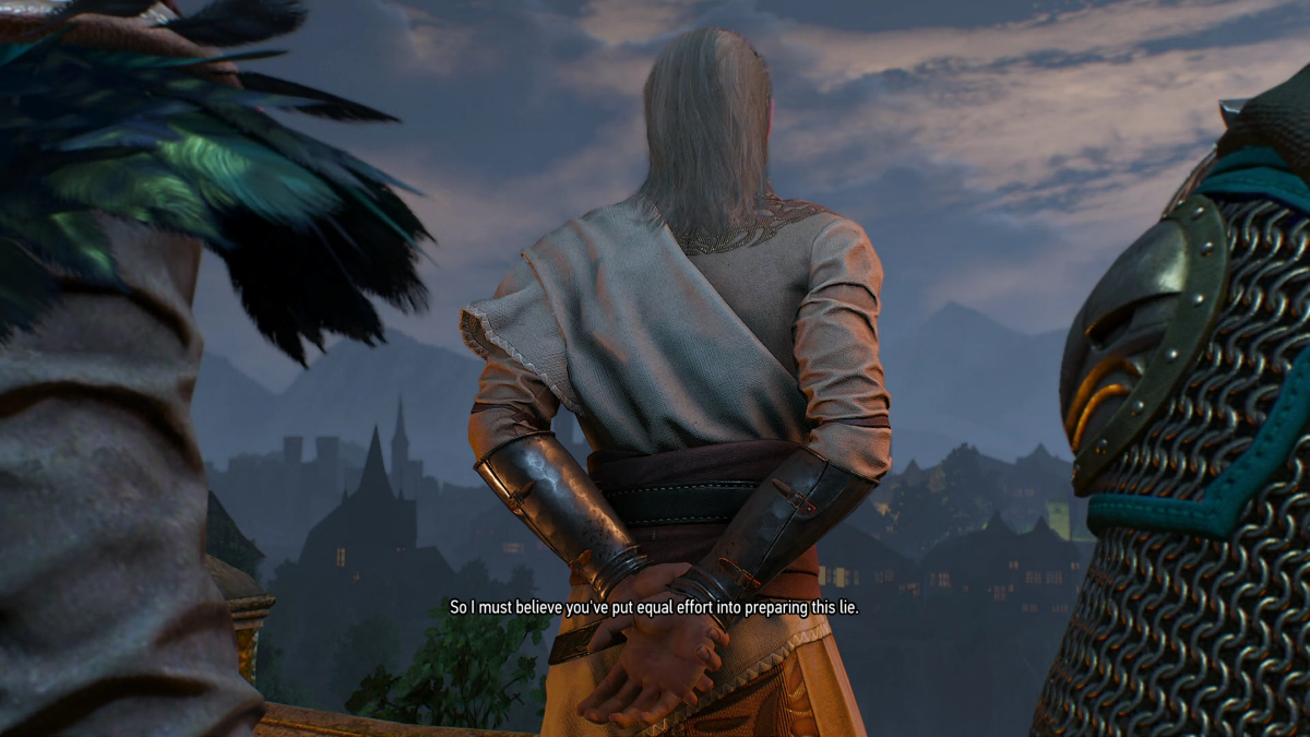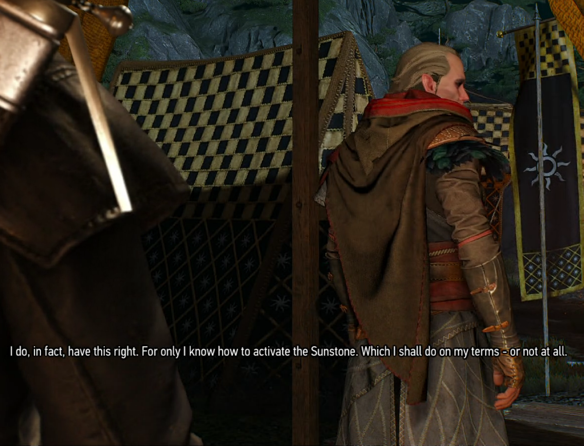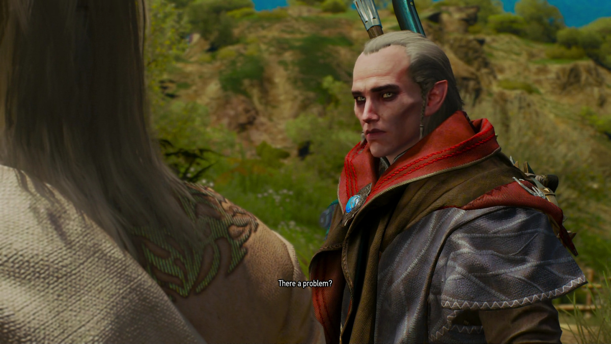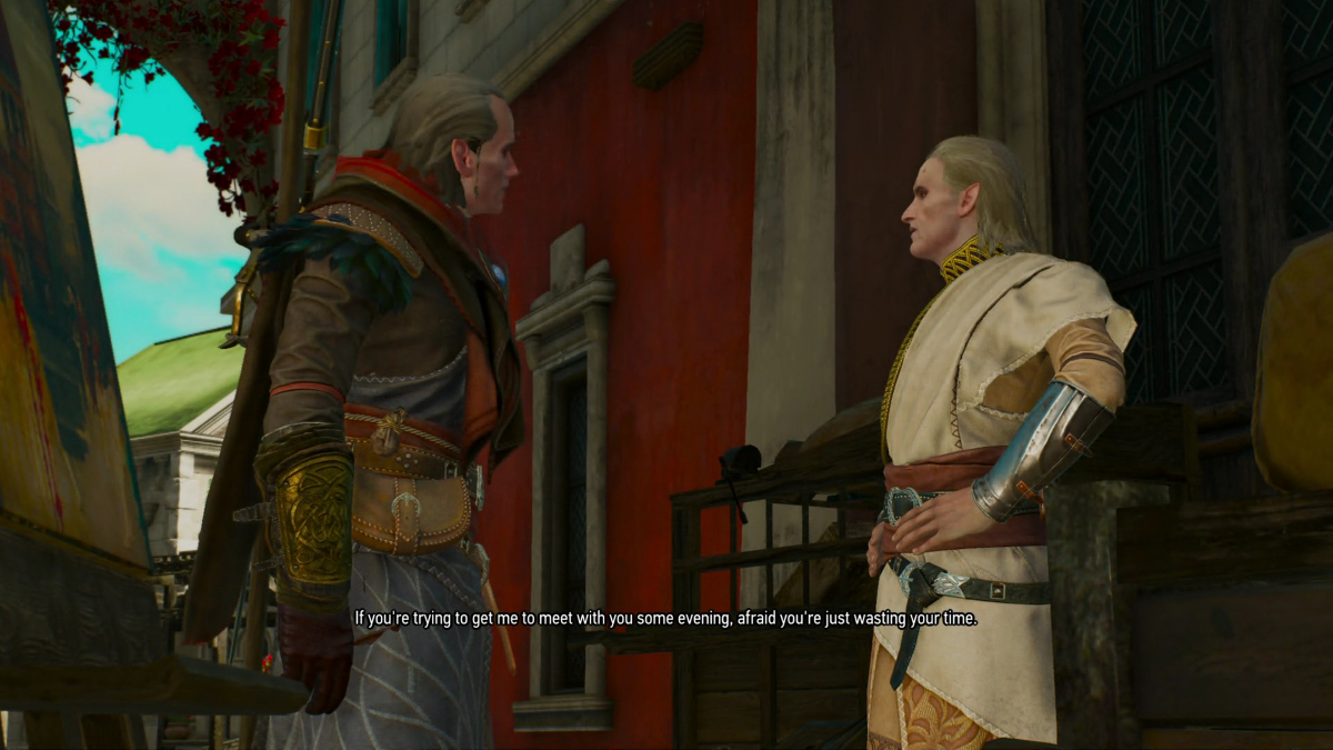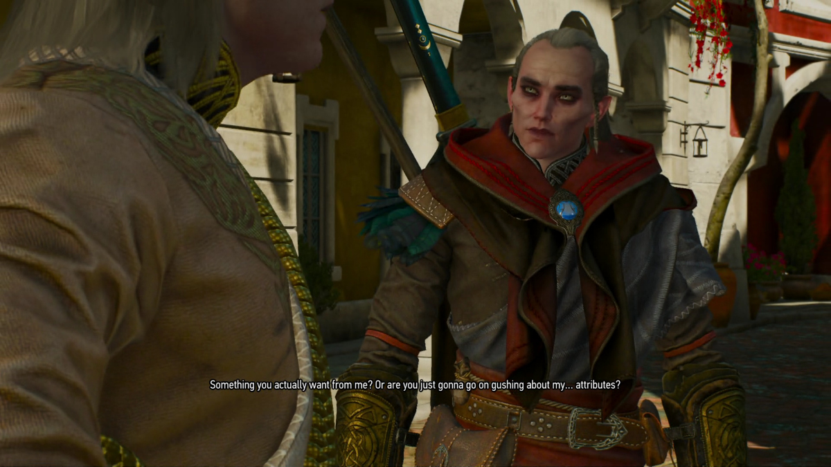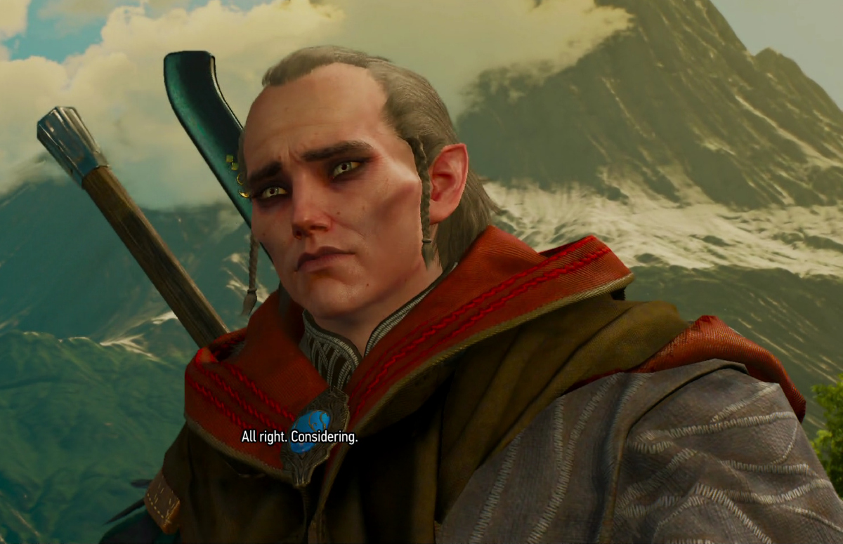 And progressed to "Wait, Geralt says not to trust him? Why? I must know why. Is he evil? I love evil men. Is this guy an evil, Elf sorcerer? OMG! I love evil Elven sorcerers!"