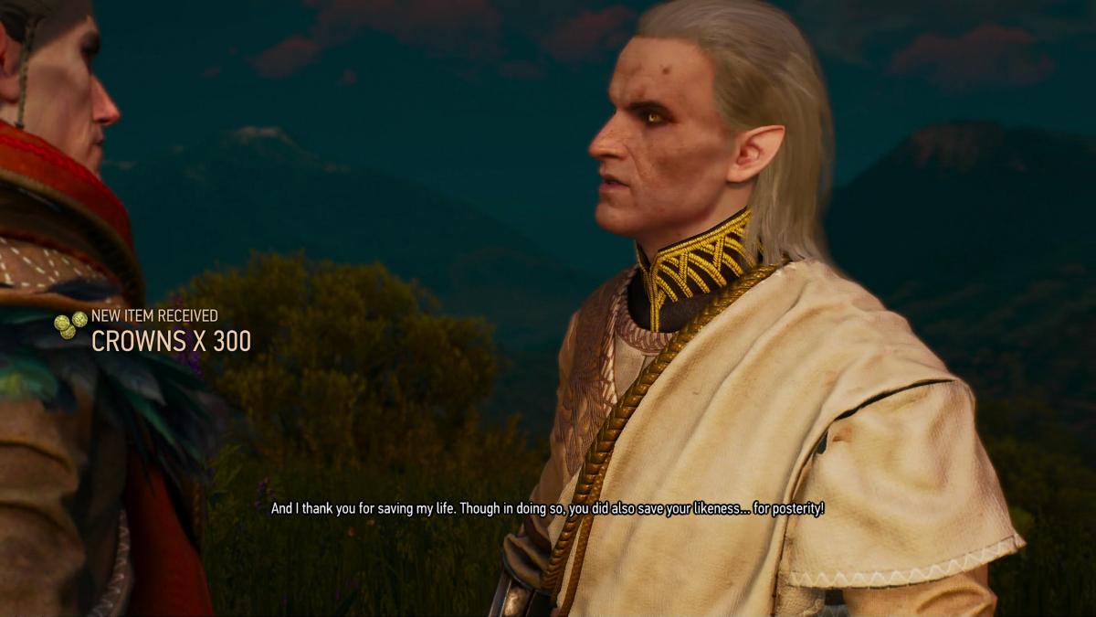^^you’ll also get a drunk Avallac'h juggling on stage, wearing donkey ears, dancing a jig, beating people up with a fence post, winning a stuffed pig for Ciri by chasing pigs through a pigpen, having a fight with Gaunter ODimm, and a drunk Ciri vomiting all over him^^ Thank you for the suggestion. best episode I’ve ever played. :P