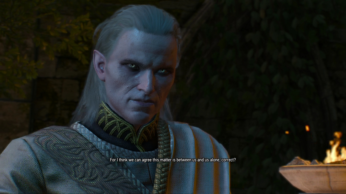 Especially regarding Avallac'h, The Wild Hunt, King Auberon, King Eredin, Caranthir, Viceroy Ge'els, the game's Final Boss Battle, Ciri, and The Aen Elle Elves in general.