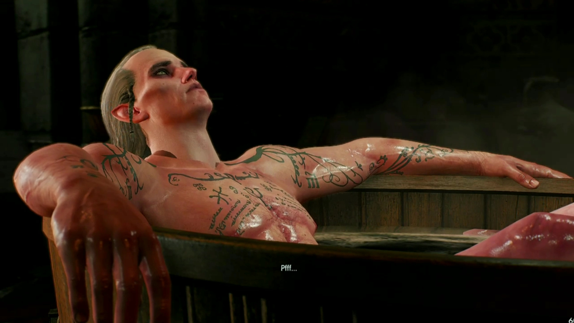 Here, just because I knew you wanted to see them. Nude Avallac'h. Avallac'h's tattoos. (Yes, I took nude screen shots of Avallac'h from every angle... I also discovered how to hack the game and remove his clothes so he just walks around naked all the time. You knew I would.)